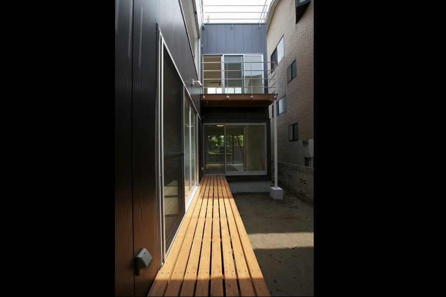 ■蕨の家 若い夫婦とご両親がいっしょに暮す二世対住宅です。それぞれの世帯の生活時間が違うため、完全独立型にしました。旗竿敷地のため陽あたりが悪く、建替える前の住まいは昼間でも照明をつけていました。そうだ中庭をつくればいい。屋上には原っぱをつくろう。そうすれば、中庭は原っぱに空けた光の井戸になり、光が降りそそぎ風も通りぬけるだろう。そうして完成した今は、中庭はふたつの世帯のコミュニケーションの場にもなっています。 ページトップへ